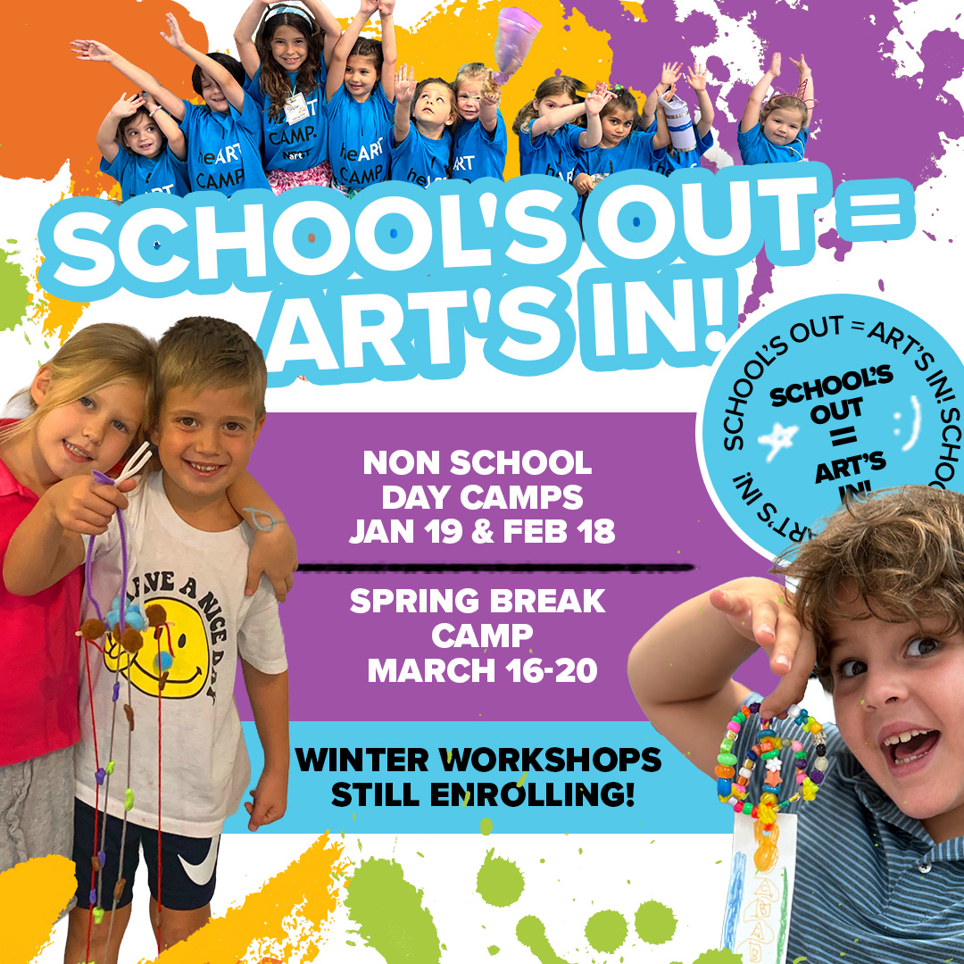 Explore our studios for kids art classes, seasonal art camp weeks, and family art workshops, or invite us to your school or community event. Parties, off-site programs, and in-school residencies make it easy to keep the creativity flowing all year long.